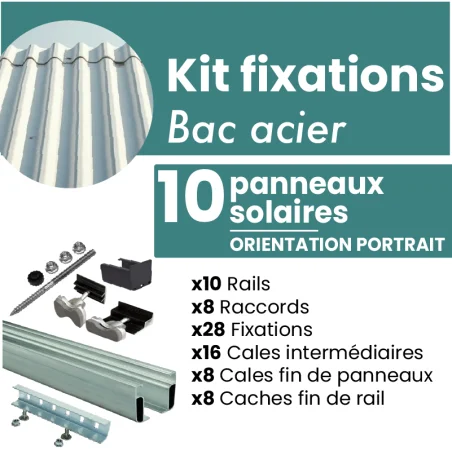 Ce kit a spécialement été conçu pour fixer jusqu'à 10 panneaux solaires sur une toiture bac acier ou en tôle. Il permettra une attache sûre et solide de vos panneaux sur votre toit.