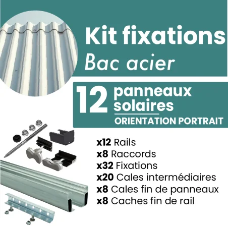 Ce kit a spécialement été conçu pour fixer jusqu'à 12 panneaux solaires sur une toiture bac acier ou en tôle. Il permettra une attache sûre et solide de vos panneaux sur votre toit.