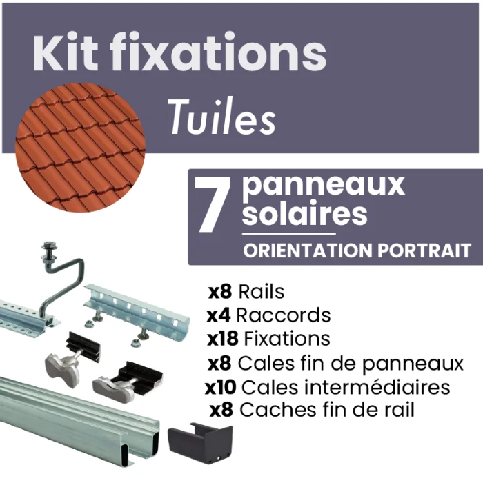 Ce kit a spécialement été conçu pour fixer jusqu'à 7 panneaux solaires sur des tuiles mécaniques. Il permettra une attache sûre et solide de vos panneaux sur votre toit.