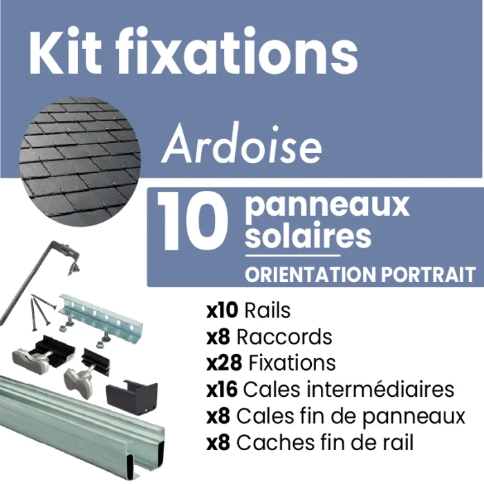 Kit de fixation pour 10 panneaux solaires sur Toiture ardoise - PORTRAIT