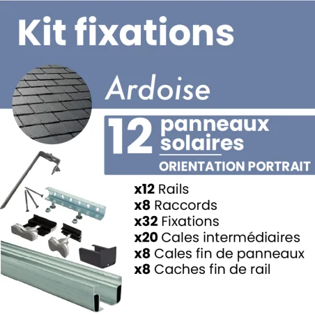 Kit de fixation pour 12 panneaux solaires sur Toiture ardoise - PORTRAIT