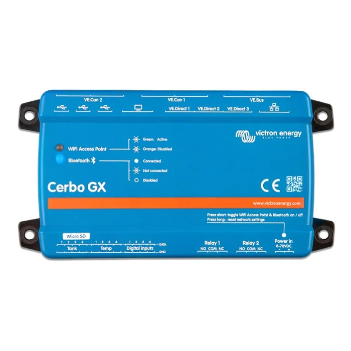 Cette version MK2 du Cerbo GX est un modèle amélioré de l'appareil initial : elle propose deux ports VE.Can (VE.Can 1 & VE.Can 2) dont le premier est entièrement isolé. Il est donc idéal aussi bien pour des applications terrestres que pour des applications marines.