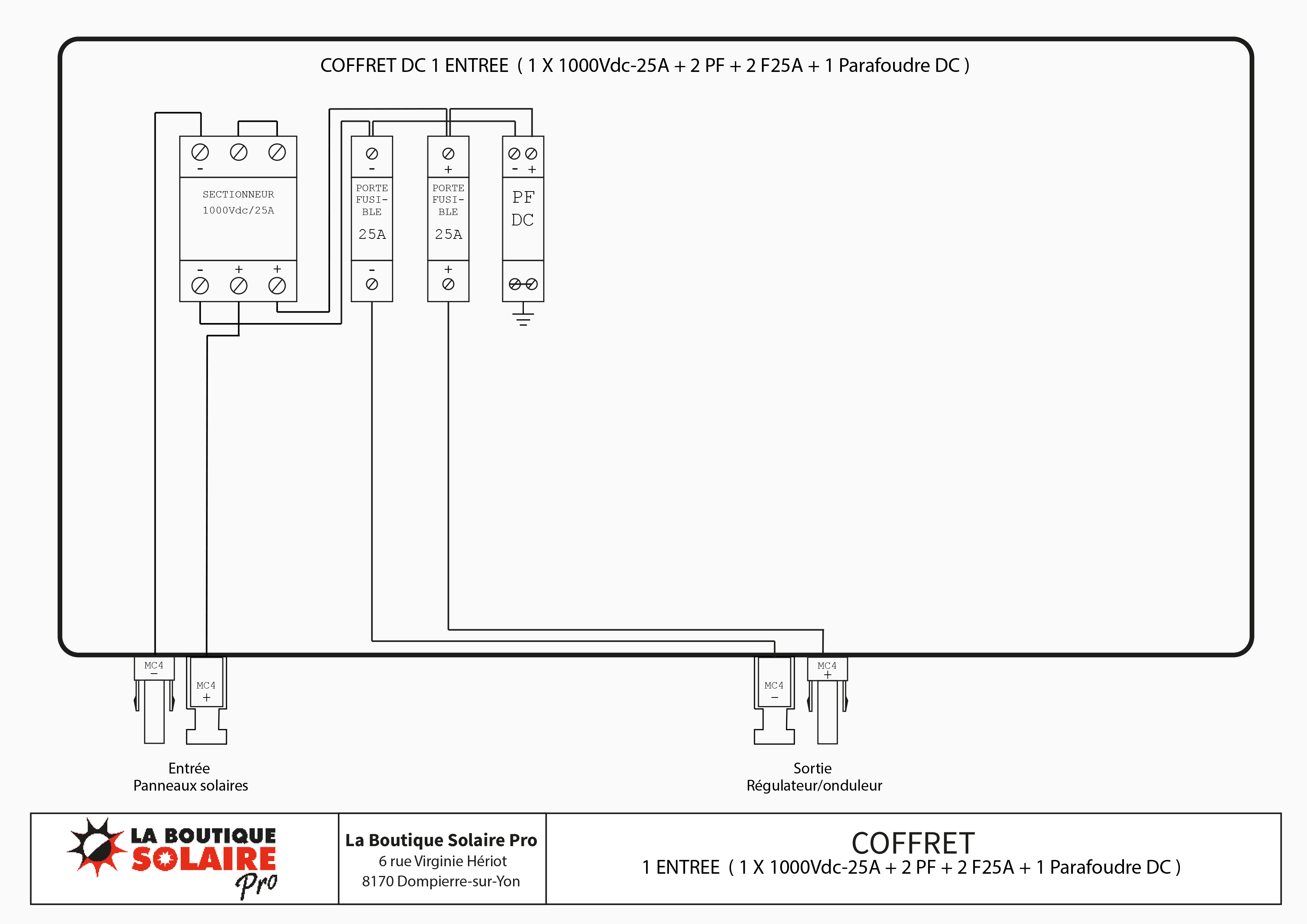 " Le coffret de protection DC pré-câblé permet l'installation de toutes les protections électriques de façon "plug'play" (brancher et utiliser) "