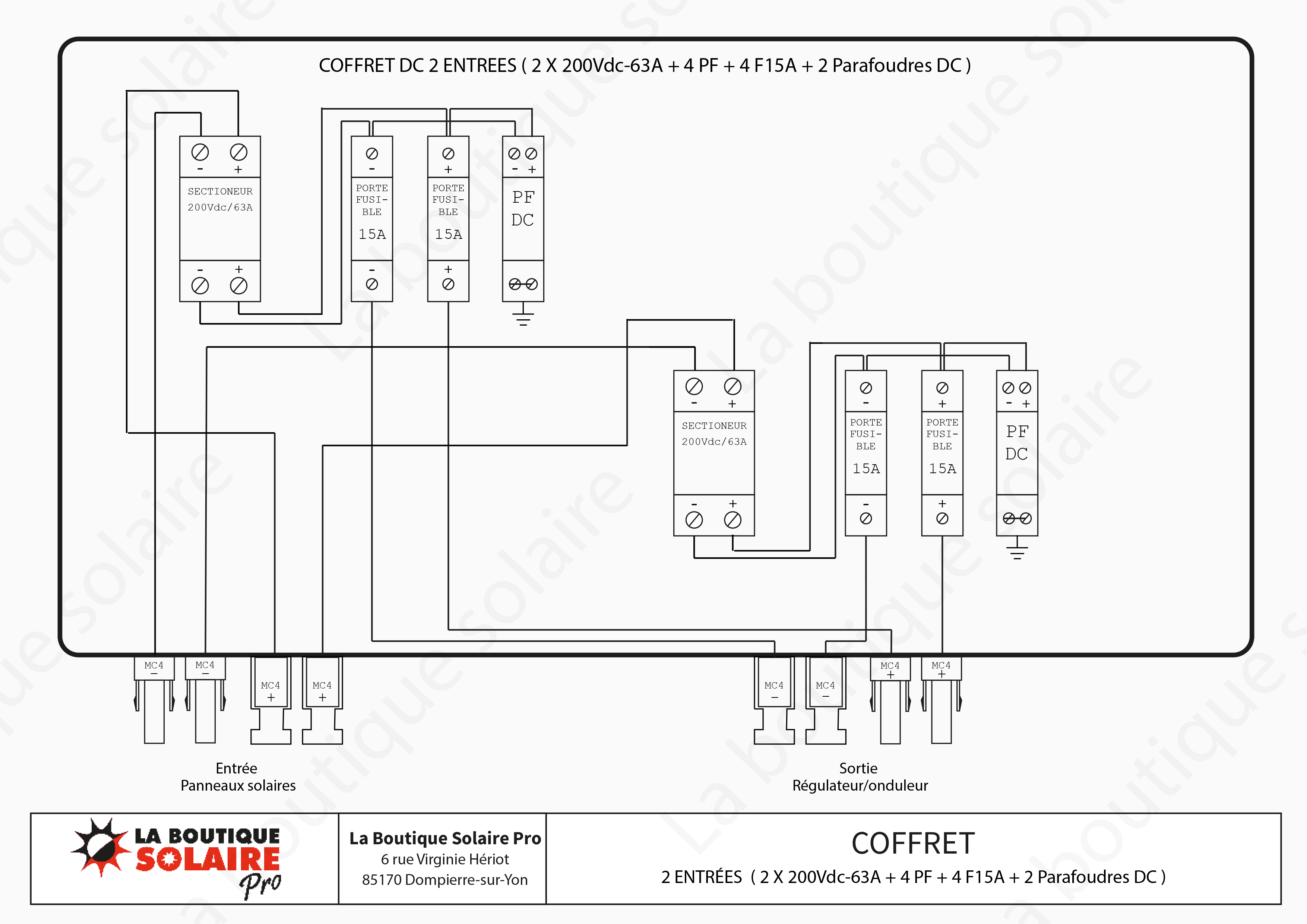 Coffret DC 2 entrées (2 x 200Vdc-63A + 4 PF + 4 F15A + 2 Parafoudres DC)
