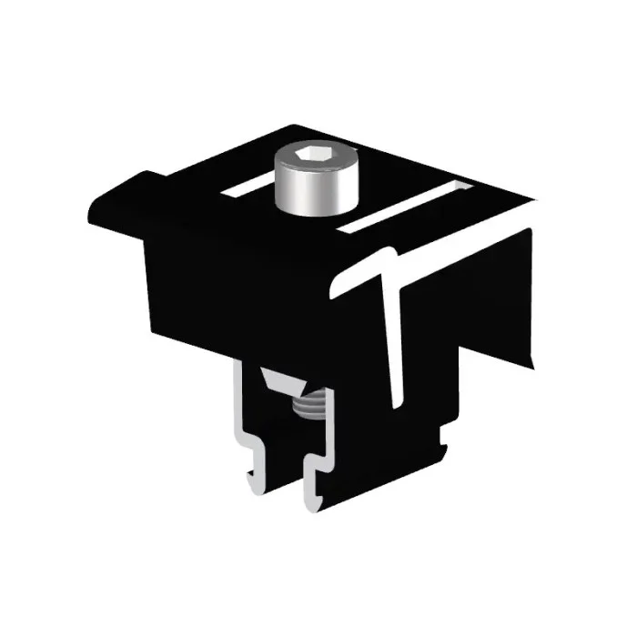 Combinés aux étriers intermédiaires et aux mini-rails de la même marque, sa finition en aluminium anodisé noir apporte une esthétique haut de gamme et discrète, se fondant parfaitement avec les cadres noirs des panneaux modernes, tout en offrant une résistance exceptionnelle à la corrosion et aux intempéries.