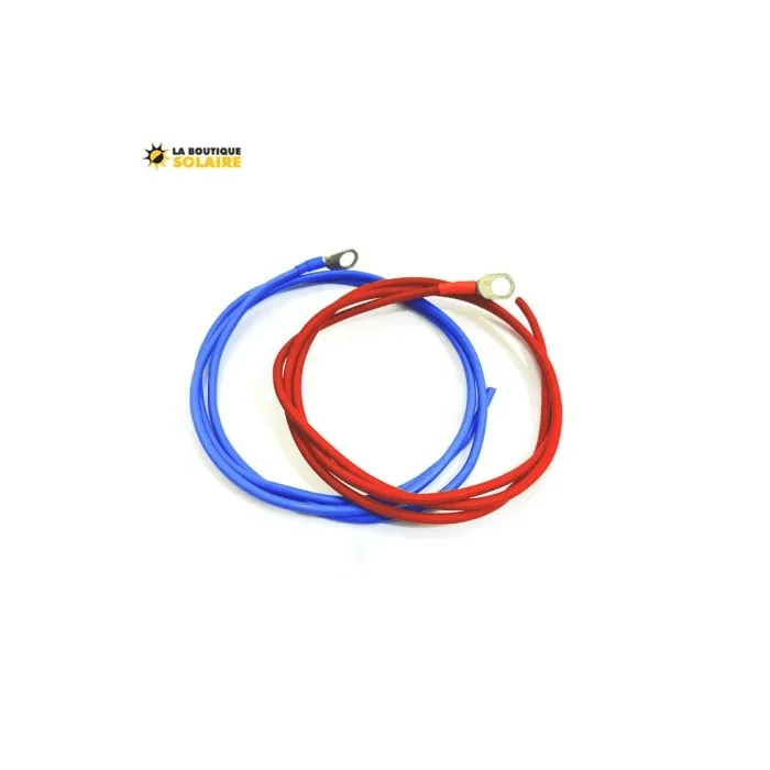 Kit Câbles 2 x 1 mètre de 6 mm2 Rouge / Bleu + 2 cosses 6/8.