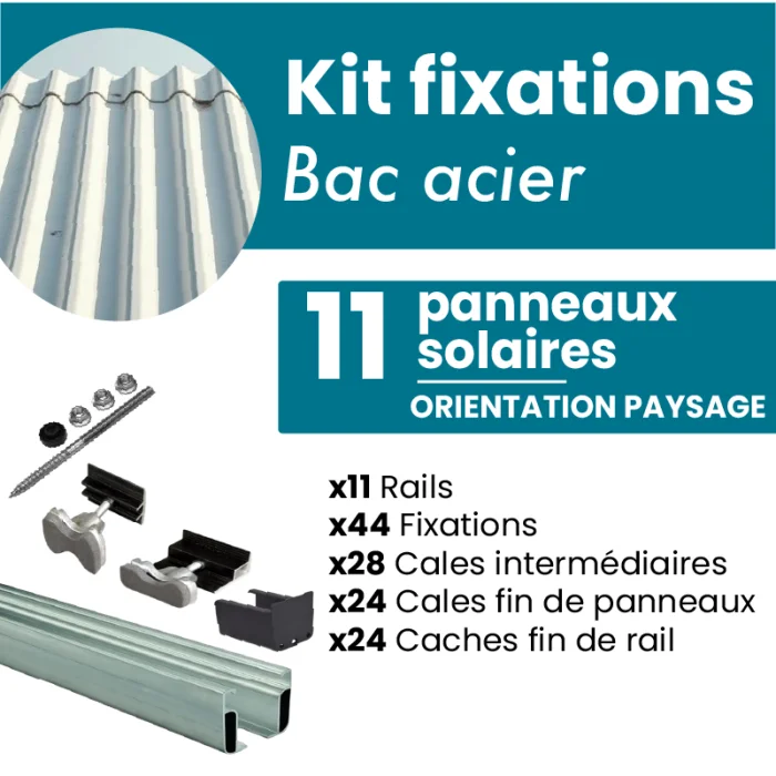 Kit de fixation NOIR ou GRIS pour 11 panneaux solaires sur Toiture bac acier, toit en tôle - PAYSAGE