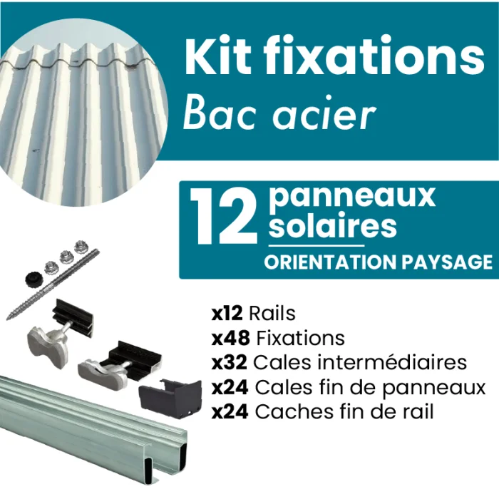 Ce kit a spécialement été conçu pour fixer jusqu'à 12 panneaux solaires sur une toiture en bac acier/tôle. Il permettra une attache sûre et solide de vos panneaux sur votre toit.