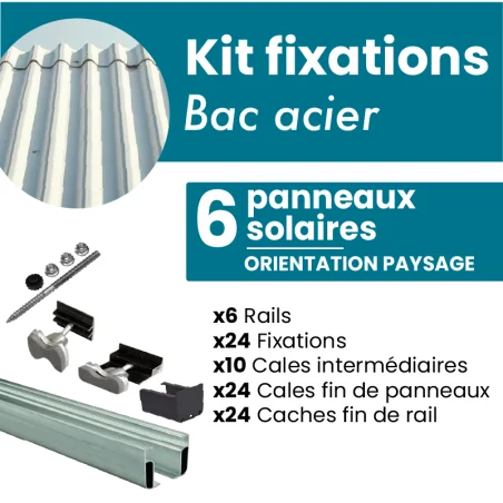 Ce kit a spécialement été conçu pour fixer jusqu'à 6 panneaux solaires sur une toiture bac acier ou en tôle. Il permettra une attache sûre et solide de vos panneaux sur votre toit.