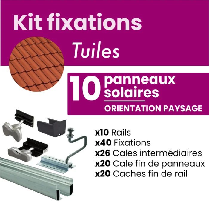 Ce kit a spécialement été conçu pour fixer jusqu'à 10 panneaux solaires sur des tuiles mécaniques. Il permettra une attache sûre et solide de vos panneaux sur votre toit.