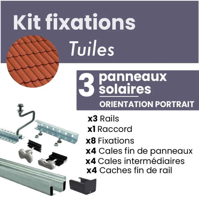 Ce kit a spécialement été conçu pour fixer jusqu'à 3 panneaux solaires sur des tuiles mécaniques. Il permettra une attache sûre et solide de vos panneaux sur votre toit.