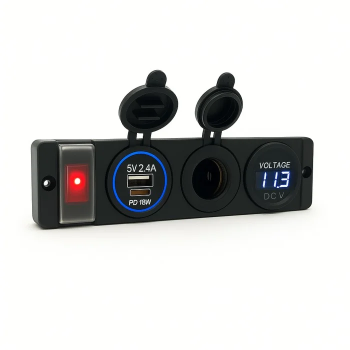 Tableau 12V PANEL SOLAIRE (Inter + USB double mixte + allume-cigare + voltmètre digital)