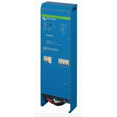 Le EasySolar associe un contrôleur de charge solaire MPPT, un chargeur / convertisseur et une distribution CA dans un seul boîtier. Ce produit est facile à installer, avec un minimum de câblage.