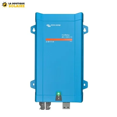 De plus un convertisseur Multiplus compact est présent afin de garantir la charge de vos batteries par l'énergie solaire ou bien le réseau public ou depuis une source externe de courant.