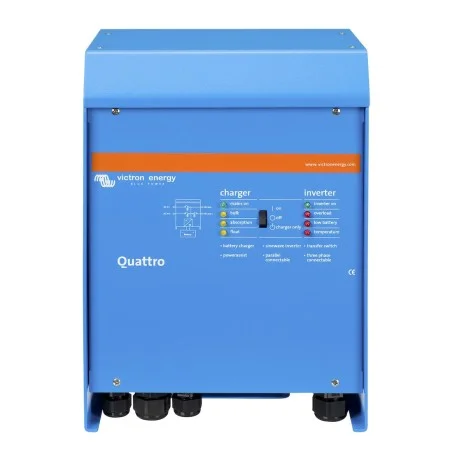 Il permet de convertir la tension des batteries en tension réseau 230V avec une puissance de sortie de 8000 Va semblable au MultiPlus,le Quattro combine également un ensemble convertisseur et chargeur.