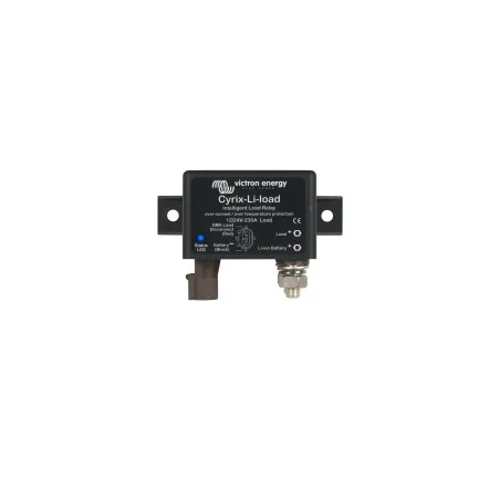 Ce coupleur de batteries Cyrix-Li-Load de Victron Energy est un relais de puissance contrôlé par un microprocesseur. Ce dernier connecte automatiquement des batteries en parallèle dès que l'une d'entre elles atteint une tension pré-établie et les déconnecte lorsque la tension chute en dessous du niveau "Float". Cela qui signifie qu'une ou plusieurs batteries sont en cours de décharge).