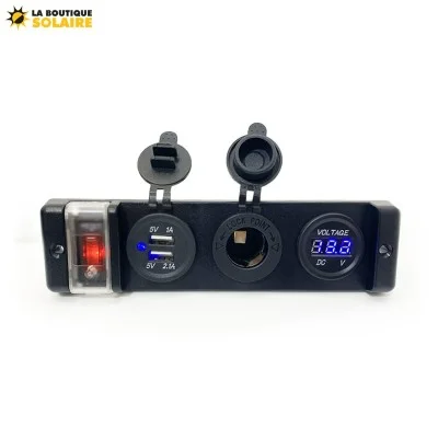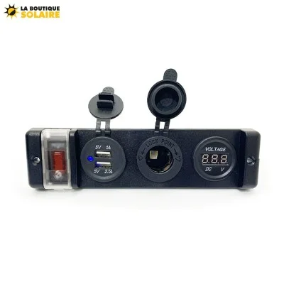 Tableau 12V PANEL SOLAIRE (interrupteur + USB 1x2.1A et 1x1A + allume-cigare 12V + Voltmètre)